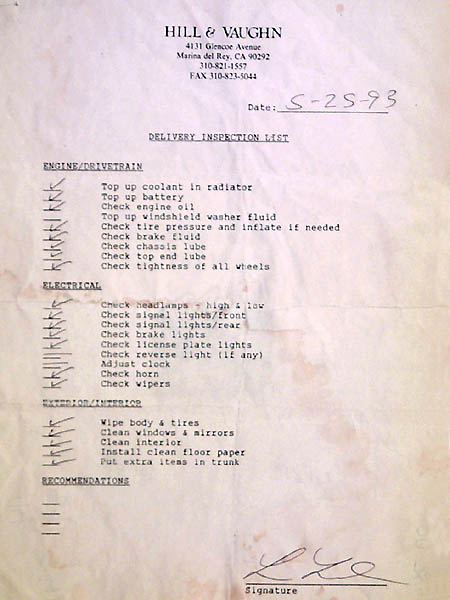 Built in Barcelona in 1967, this simple Seat 850 Coupe was originally purchased new by Maria Fernanda Fernandez Posada of Madrid, Spain, who held on to her registration permits, warranty coupon booklet, manuals, and technical inspection documents throughout the life of the car. Ms. Posada registered & inspected the car yearly during her 26 years of ownership, and travelled only a little over 89,000 kilometers (55,000 miles) in that time, an average of less than 2200 miles per year. In early 1993 Ms. Posada sold the modest coupe to an agent of billionaire media mogul Emilio Azcárraga “Tiger” Milmo, for reasons best understood only by “The Tiger” himself. The Coupe was subsequently imported to Los Angeles, where it was delivered to an eager Mr. Azcárraga. Tiger's agent dropped the car off at the Hollywood Chevron at 1934 Cahuenga Boulevard on March 9th 1993 for a smog test, where station personnel recorded an odometer reading of 89,200 kilometers on the invoice. Perhaps Mr. Azcárraga decided then and there that the car needed mechanical attention of a higher level, because the car was soon parked & disassembled inside the renowned automotive restoration facility of Hill & Vaughn in Marina Del Rey, California for a thorough cosmetic and mechanical restoration. At least 377 documented billable hours and possibly many more undocumented ones were spent on the humble coupe by Hill & Vaughn specialists, who normally work their magic on such Pebble Beach Concours icons as Hispano-Suiza, Delahaye, Bugatti, pre-war Cadillacs, and the like. The completed coupe was inspected and released by Hill & Vaughn on May 23rd, 1993, and ownership was officially transferred to Mr. Azcárraga by the California DMV on that same day. Soon afterward, as the story goes, the multi-billionaire gave the car to his current wife Paula Cussi as a present. A Latin-American celebrity in her own right, Ms. Cussi had risen to fame and popularity via her appearances on popular Spanish language variety shows which aired throughout the Latin-American world. At the time of her gift, she was in the midst of a highly regarded second career as the Managing Director of the Cultural Center for Contemporary Art in Mexico City. It is not known why The Tiger would present the car to Paula Cussi, a rich and worldly woman who one would assume would have little time or interest in such a modest vehicle. Did he do it as an elaborate joke? A romantic reminder of simpler times? What we do know is that Paula Cussi did register and insure the car in her name as a daily driver for the next five years. The car remained hers past the date of her divorce from Mr. Azcárraga and his later marriage to Adriana Abascal, Miss Mexico and 5th runner up in the 1989 Miss Universe pageant. Indeed, Paula Cussi remained the registered owner of the diminutive Spanish coupe beyond the date of Mr. Azcárraga’s untimely death of cancer in 1997. As might have been expected, Paula did not use the car regularly, as it has only covered 600 kilometers (373 miles, or about 2 tanks of gas) between its arrival in the United States and its eventual sale to a balding yet curiously pointy-haired Network Engineer in late1999. Said engineer was only looking for a cheap and fun daily driver, and did not know the history of the lovely Coupe until after he had purchased it. He is quite surprised about the car's unique and unexpected pedigree, and enjoys the car regularly, but only on special jaunts, not as a daily driver. The car is fantastically reliable, and is literally as new as it was in 1967. A 550 kilo, 50 hp time machine, and likely to be the only one in the world in this condition. |